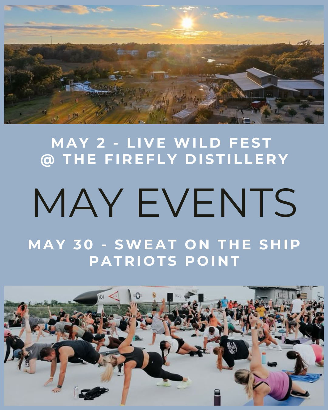 On May 30, we’ll head to Sweat on the Ship at Patriots Point, an event rooted in community, collective energy, and movement, with a mission to support local talent and create lasting positive impact.