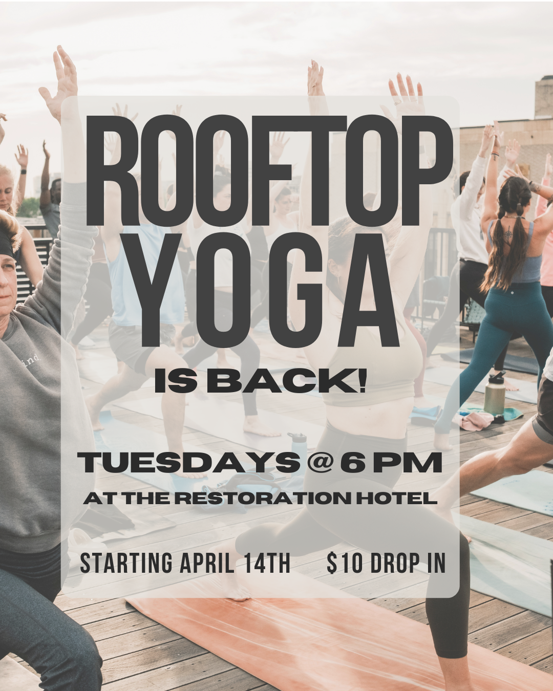 Drop-ins are just $10. Bring your mat, bring a friend, and we’ll see you on the rooftop. ☀️